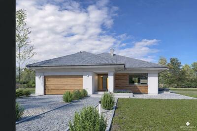 16Nowoczesne domy p...wne w technologii drewnianej, z 5 pokojami, garażem w bryle budynku. Bardzo funkcjonalny rozkład ...